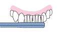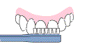 スクラビン法と殆ど同じですが、歯ブラシをやや歯茎に対してやや鋭角に当てて微振動させます。歯茎の隙間(歯周ポケット)に毛先を突っ込む感じです。