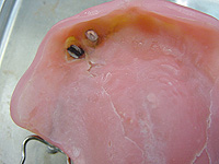 殆どの自費で作る義歯はプラスチック製ではなく金属性の床とプラスチック製の歯肉・歯の混合素材で作られています。